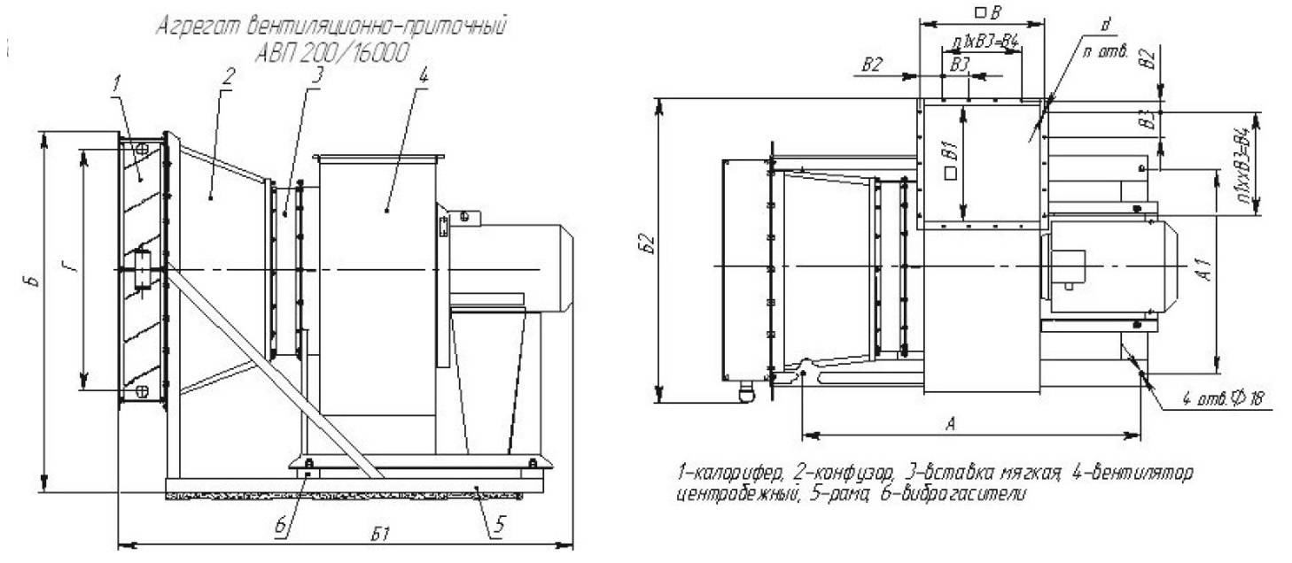 Агрегат вентиляционно-приточный АВП 200/16000 предназначен для нагрева и перемещения воздуха в приточных камерах, воздушно-тепловых завесах, рециркуляционных установках для нагрева помещения производственного и сельскохозяйственного назначения.