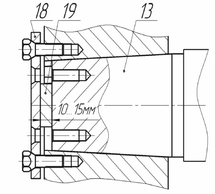 13 – вал; 18 – шайба торцовая; 19 – технологическая плитка.